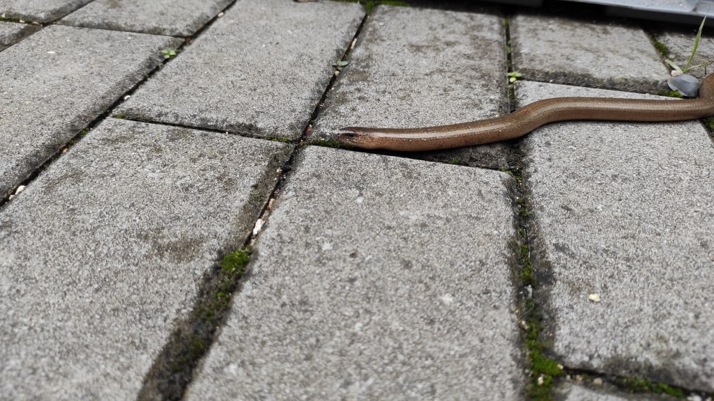 It’s been some time since I noticed that small worms started to occupy our yard and garden. 🐍 But that’s actually not a surprise as around our house there are plenty of comfortable places for them to hide. Usually they quite like rubble, stones or a pile of wood. I’ve been observing them for a couple of years so I decided to share my photos and write some lines about them.