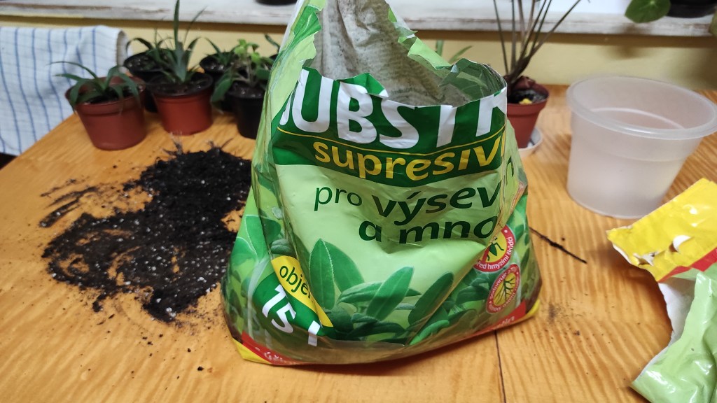 K jednomu z výše popsaných jarně typických úkolů jsem se už dostala přes týden, a to jest přesazení rostlin neidentifikovatelného typu. 🙂