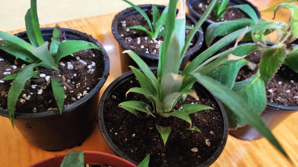 Baby pineapples – during winter a lot of them grow up so at least 5 of them are new growths from original plant.