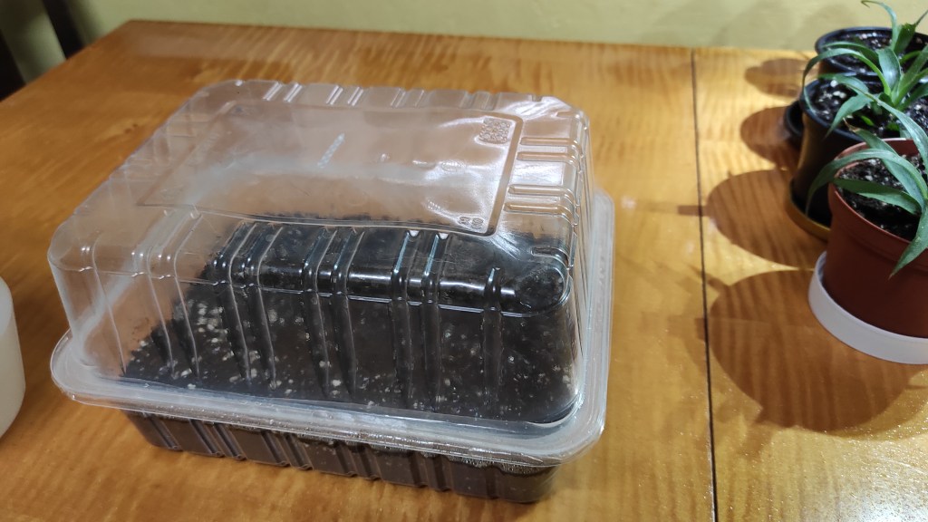 Na konci února na mě dolehla jarní horečka a tak jsem zasadila první sazeničky s nejdelším vegetačním obdobím – papriky. A jelikož doma máme tři kočičí zlobivce a musela jsem svoji budoucí úrodu nějak ochránit, misku se substrátem jsem zakryla průhlednou miskou, čímž vzniklo takové DIY pařeniště. Sazeničky tak byly chráněné před kočkami a zároveň lépe rostly, jelikož se půda mohla zapařit.